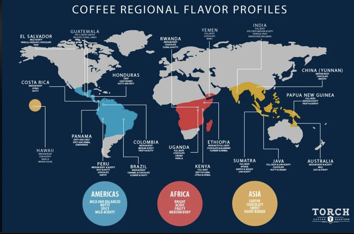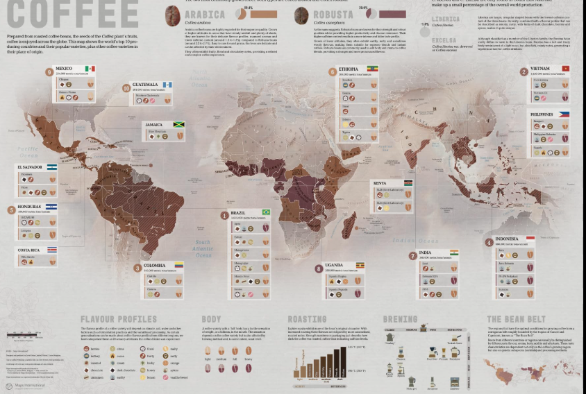 Brazil, Ecuador, Ghana, Vietnam — well-known coffee lands for Russians.
